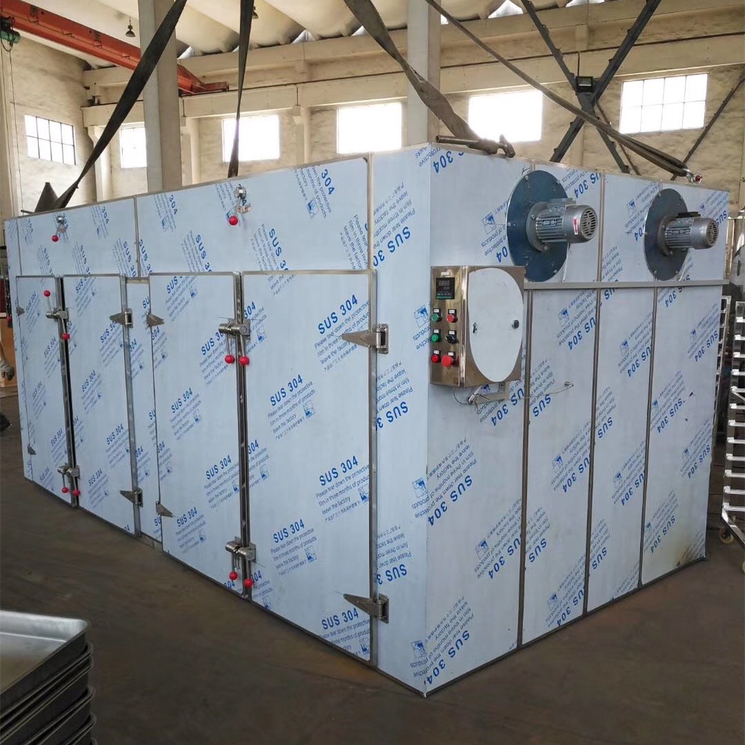 يوزع العميل مادة التجفيف على الصواني ويضع الصواني على عربة واحدة تلو الأخرى ، ثم يرسلها إلى الفرن.حجم صينية الفولاذ المقاوم للصدأ 460 * 640 * 45.
